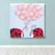 Ce dessin en toile présente un adorable coccinelle présentant son nouvel amour avec un bouquet de magnifiques ballons roses en forme de coeur, un cadeau parfait pour l'amoureux de coccinelle dans votre vie. Il est basé sur une oeuvre d'art originale de © One Artsy Momma.