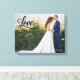 Cette belle toile présente votre image de mariage préférée, avec le mot Amour dans un beau script en surimpression. Ce cadeau attentionné fait un excellent cadeau de 1er anniversaire de mariage et deviendra sûrement un souvenir de mariage. Pour personnaliser, cliquez simplement sur 'personnaliser ce design', téléchargez votre photo et entrez vos informations. Zazzle se charge du reste.