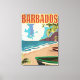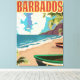 Affiche des vacances à la plage de sable tropical de la Barbade. Peut-être un poster de mariage de la Barbade ou un imprimé de voyage de vacances d'une plage de sable de la Barbade.
