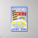 La Chine, la route terrestre. Northwest Orient Airlines. Affiche de voyage d'époque montrant une pagode et un avion, au-dessus d'une carte du système de Northwest Orient Airlines, vers 1950.