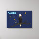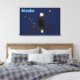 Un aigle à tête blanche scanne le ciel de sa perche sur une branche d'arbre; superposé sur un drapeau de l'Alaska. Le texte "Alaska" apparaît également en bleu et blanc brillant.