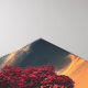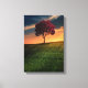Une belle photo d'un coucher de soleil avec un seul arbre rouge sur une colline verdoyante. Contraste intéressant et maussade avec des nuages sombres et lugubres illuminant le sol en contrebas avec un ciel jaune orangé sans nuages qui brille dans l'arrière - plan. Beau mélange de lumière et d'ombre.