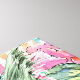 Illustration aquarelle du flamant rose magnifique entouré de plantes tropicaux et de fleurs.