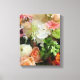 Un magnifique motif floral aquarelle illustrant un bouquet de fleurs aux roses de pêche délicats, des daises roses et un riche feuillage vert. Un bel ajout à votre décoration intérieure.