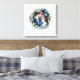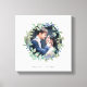 Cette jolie toile enveloppée présente une couronne d'aquarelle remplie de feuilles verts branchés et de baies bleues poussiéreuses, et votre photo personnelle apparaît au centre. Il y a aussi de la place pour personnaliser avec vos noms.