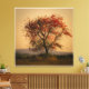 Un arbre solitaire se tient dans un champ ouvert, ses feuilles rouges et oranges brillant à la lumière dorée du crépuscule. Les douces collines de l'arrière - plan et les couleurs chaudes de l'automne créent une atmosphère paisible et nostalgique. Une pièce murale parfaite pour ceux qui aiment la tranquillité de la nature.