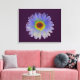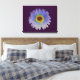 Cette impressionnante impression de toile comporte une photographie d'une fleur de marigold manipulée pour créer une fleur magnifique avec un mélange de couleurs de l'arc-en-ciel. La fleur est sur un arrière - plan violet foncé dramatique.