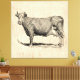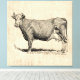 Une vintage vache holstein illustrée design d'art avec un arrière - plan de script classique beige ou bronze, parfait pour tous ceux qui aiment les animaux de ferme, l'art occidental et les illustrations antiques!