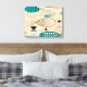 Toile enveloppée d'art moderne du poisson du milieu du siècle. Noir et blanc avec poisson turquoise et abstrait design sur un arrière - plan crème, brun clair.
