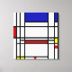 La toile enveloppée Mondrian Modern Art a une section comme Composition 10 de Pieter Piet Mondrian en rouge, bleu, jaune, noir et blanc, la plus connue du groupe de mouvement artistique De Stijl qui a utilisé trois couleurs primaires avec des lignes noires sur un arrière - plan blanc
