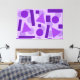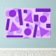 Figuras geométricas (triángulo. círculo, rectángulo) en colores planos monocromo violeta. Arte decoración de interior (casa, apartamento, sala, habitación, local comercial, tienda, restaurante, escuela, colegio, centro educativo, librería, oficina...).