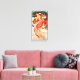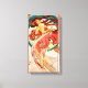 Affiche de lithographie Art nouveau de 1898 de l'artiste tchèque Alphonse Mucha (1860-1939). Belle femme en robe rouge, fleurs dans ses cheveux longs, fluides, rouge vif, son dos arqué, regardant sur les épaules bardées, debout sur ses orteils.
