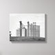Photographie originale en noir et blanc d'un complexe d'élévateurs à grains de ferme sur une colline du Midwest rural imprimée sur une toile emballée 11x14. La photo a été prise du siège arrière d'une moto lors d'une tournée en août et septembre 2021. Une photo originale de BohippianFinch.