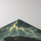 L'art imaginaire mystique d'un sorcier sombre assis sur un trône, flanqué de loups et de corbeaux sous un ciel orageux.