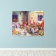 Une charmante toile vintage mettant en vedette Père Noël avec ses elfes dans l'atelier.