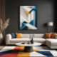 Une architecture abstraite s'élève dans des lignes géométriques traversant comme des gratte-ciel de lumière. Le ton doré se brise à travers le bleu et le gris, révélant un lever de soleil symbolique qui unit force et délicatesse. Les oeuvres d'art véhiculent la modernité, l'espoir et le dynamisme des villes en pleine croissance.