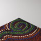A propos de "DESERT HEAT" un dessin original de Skye Ryan-Evans (2011) © Cette image terreuse d'une scène de chasse est mise sur fond autour d'Uluru ou Ayer's Rock en Australie Centrale. C'est une carte australienne de style aborigène d'une partie du désert aussi connue en Australie, comme l'Outback. Les différents points colorés représentent des éléments naturels comme les montagnes, les cours d'eau, les lits de criques séchés, les sources de nourriture comme Kangaroo et Goanna, Gecko et Snake etc. De nombreux cercles représentent de petits plantes du désert qui fleurissent pendant la saison des pluies et les formes florales du ciel sont des étoiles en spirale brûlant dans les cieux et jetant leur lumière pour les animaux nocturnes qui sillonnent le désert en cool de soirée. La pièce centrale représente le soleil implacable du désert et la chaleur qu'il génère pour apporter vie et mort au cycle du désert. Certaines des formes animales du ciel dépeignent les esprits animaux auxquels le chasseur aborigène rend grâce lorsqu'il prend un animal pour sa subsistance. Le serpent est lié à la Création dans les mythologies du rêve australien. Dans cette représentation terrestre, le serpent rampe à travers des herbes désertiques sèches et le second, vu dans le ciel, est représentatif de l'esprit du serpent. 25 % des pourcentages gagnés grâce à cet imprimé d'art biologique sont donnés au grand Habitat pour l'humanité en Amérique du Nord.