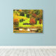 Cette impression de toile d'art enveloppée présente une belle journée d'automne saisonnière. Les arbres sont brillamment colorés avec des couleurs de feuillage automne de rouge, orange, jaune, or, vert et marron. Deux bancs donnent sur un joli étang aux reflets d'eau. Promenez-vous dans ce parc coloré, dans les collines d'Ithaca, dans la région des lacs Finger, dans l'état de New York.