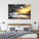 A powerful scene where the ocean meets the mountains beneath a blazing sky. The crashing waves symbolize movement and transformation, while the sun breaks through the clouds bringing hope. A striking artwork for spaces seeking energy, depth, and inspiration.
