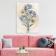Cette magnifique oeuvre d'art présente un bouquet de fleurs bleues vives et de feuilles dorés chatoyants, dressés contre un arrière - plan blanc immaculé. Une touche de luxe et de sophistication pour toute maison.