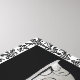 © Susan Eby Glass / Pomme sauvage. Baignoire contemporaine française en noir et blanc. Des motifs floraux noirs et blancs entourent l'image.