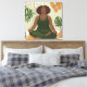 Belle femme noire aux courbes méditant à la maison. Elle est détendue et calme. Elle s'aime et aime le monde qui l'entoure. Elle est belle extérieurement et intérieurement. Le dessin est plein de lumière, de chaleur et de calme.