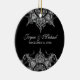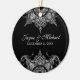 COLOR PALETTE: White on Black. DESIGN COLLECTION: These are matching ornaments personalized for the couple's first Christmas or as a special anniversary gift. This is the two sided version. A single side version is available as well. This is a truly elegant and sophisticated Wedding Invitation Collection with a formal modern vintage flair! Shown here in white on black, the invitation has an elegant dramatic appearance. For a beautiful finishing touch select the matching invitation envelope of the same design. This is artwork designed by Audrey Jeanne Roberts created from antique vintage etched printer's decorative ornament elements that have been created into a damask pattern. There are RSVP response cards, Reception Invitations, Wedding Program, Driving instructions, Hotel Accommodation cards, postage, stickers and more available to match. If there's a product you would like to have created that isn't offered just message us!