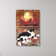 Toile Black White Cat Lying front of Fireplace