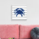 Une silhouette de crabe bleu marine contre un motif rayé gris clair et blanc. La motif rayée peut être carrelée à une taille différente. Vous pouvez également customiser la couleur arrière - plan gris clair. Créez une impression personnalisée de toile enveloppée. Essayez le code de couleur 00255E si vous souhaitez faire correspondre la couleur de silhouette lorsque vous ajoutez votre propre message texte. Images nautiques et peintures murales.