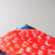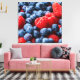 Cette conception présente une image de fond des framboises et des bleuets, qui sont des fruits sains. Les framboises sont rouges et les bleuets, comme son nom l'indique, sont bleus.
