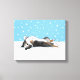 Toile Shetland Sheepdog Imprimer. Joli dessin d'une merle bleue Sheltie roulant dans la neige avec des flocons de neige descendant. Visitez le Doodle World de Jenn pour encore plus de produits avec ce design de chien heureux et de nombreux cadeaux de vacances pour chiens de races.