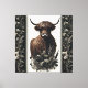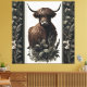 Cette vache boho highland présente une bande d'impression florale sombre et moody pour créer un imprimé de campagne sophistiqué et charmant.