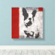 Toile Boston Terrier en noir et blanc avec frontière rou