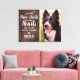 Toile de mémorial d'animal de compagnie personnalisée avec une photo de votre animal de compagnie bien-aimé, un fond à effet de bois rustique et une citation de sympathie qui dit "vous avez laissé des empreintes de pattes sur nos cœurs et nous sommes à jamais changés", une empreinte de patte, un cœur, le nom de votre animal de compagnie et les dates. Un beau souvenir et un hommage à votre précieux chien ou chat de famille.