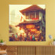 Cette oeuvre d'art capture magnifiquement le charme d'un petit café indonésien à Jakarta niché dans une rue éclairée par le soleil. Les tons dorés chauds de la fin de l'après-midi créent une atmosphère nostalgique et cosy, où les habitants se réunissent pour discuter et prendre un café frais. La structure en bois rustique, ornée de panneaux vintages et de babioles suspendues, dégage un charme d'antan, contrastant avec les bâtiments modernes imposants
