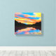 Un canot traversant un lac de montagne reflétant les belles oranges et les bleus d'un coucher de soleil coloré. Ajoutez votre propre texte.
