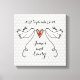 Illustration de 2 belles colombes tenant un ruban coulant avec un coeur d'amour attaché. Cette toile personnalisée est le cadeau mariage ou anniversaire parfait qui peut orner le salon des jeunes mariés pour les années à venir.