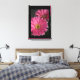 Toile Art montré avec une photo de marguerites roses sur un arrière - plan de toile noir.