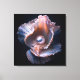 Canvas wall art with beautiful image of a sea shell and a pearl against a black background.