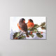 Une belle toile vintage en toile d'hiver avec deux robins perchés sur la branche d'un saint buisson, peint par l'artiste allemande Catherine Klein.
