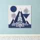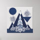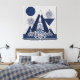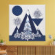Elevate your space with this striking contemporary canvas print, where the structured elegance of geometric design meets the organic beauty of botanical art. This unique piece features a collection pf intricately detailed floral blooms nestled within a series of bold, deep navy blue triangles. A minimalist solid moon hangs in the corner, casting an ethereal, midnight glow over the entire composition. The contrast between the sharp, modern angles and the delicate, textured flowers creates a captivating visual balance that fits perfectly in various home styles, from bohemian chic to modern minimalist.