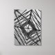 Profitez du "Centre de Tout". Image du centre d'une tour métallique, croisée avec des poutres grises. Fait en noir et blanc.