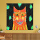 Ma peinture numérique abstraite funky d'un chat orange souriant imprimé sur une toile enveloppée
