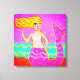 Ma peinture acrylique abstraite colorée d'une sirène rose chaud imprimée sur la toile enveloppée de la galerie