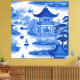 Toile Chinoiserie bleue et blanche avec pagodes et batea