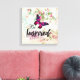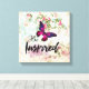 Toile Citation inspirée et collage de papillon rose