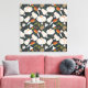 Toile Citrouille continu motif floral noir et blanc