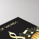 Clavier de musique tendance avec notes, clef aigu, notes et lignes rouges en bas. Musique au lieu de mots