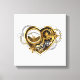 Coeur steampunk mécanique, volumétrique, avec manomètre, acier et or sur arrière - plan blanc. Style Steampunk.