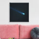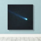 Une comète éblouissante crée une boule brillante et floue dans le ciel nocturne, suivie d'une queue bleue qui se déplace lentement parmi les étoiles dans cette vue stellaire améliorée.